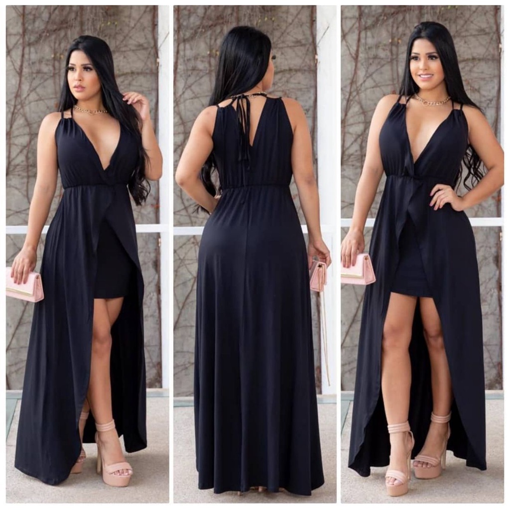 Vestido curto na frente e longo outlet atrás preto